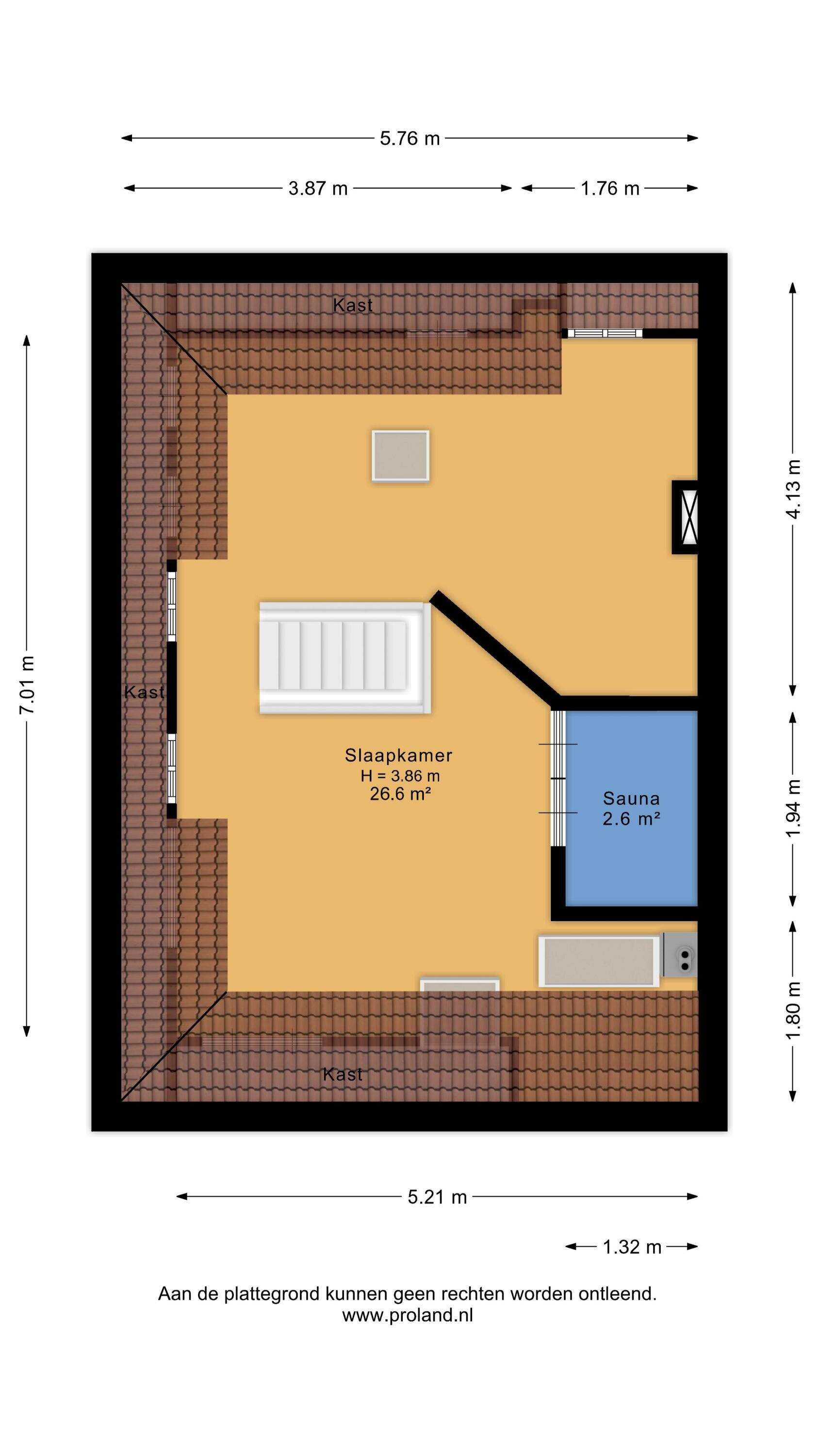 De vaste trap leidt naar de tweede verdieping waar een royale kamer is gesitueerd. Deze ruimte is veelzijdig in te richten en beschikt over een ingebouwde sauna. Deze grote ruimte valt goed op te delen in 2 luxe slaapkamers.